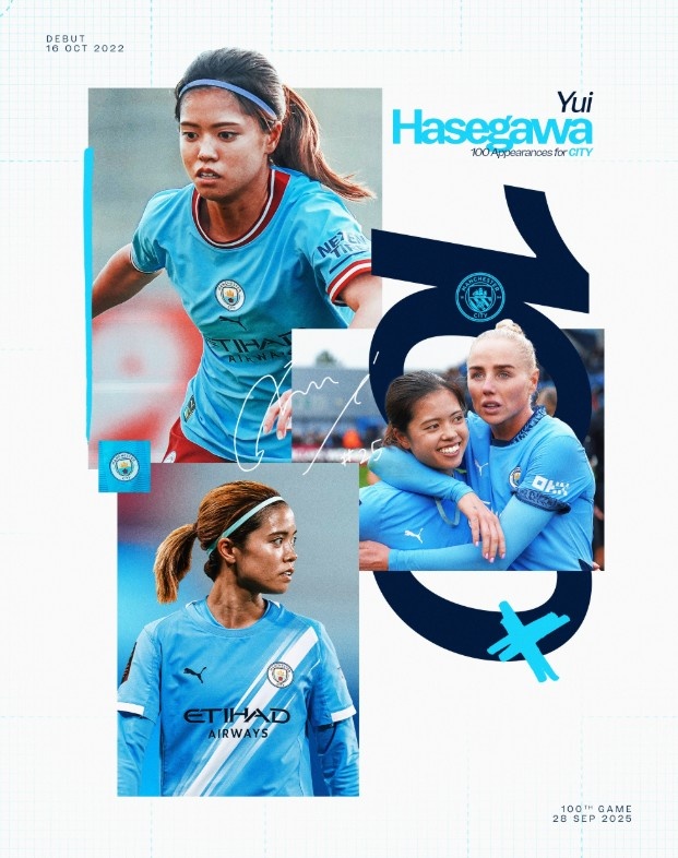 9月29日訊 曼城女足官方消息,長谷川唯完成曼城100戰(zhàn)里程碑。